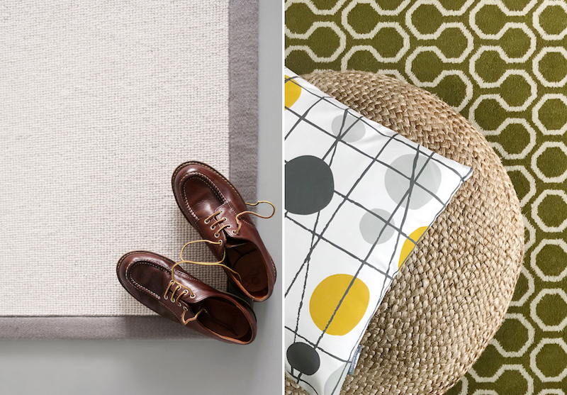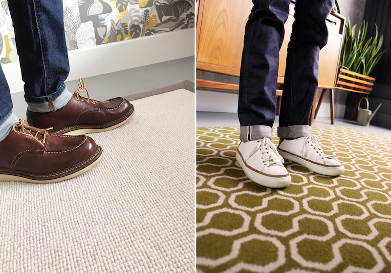 Mini Moderns: Keith’s Rug Stars choice on the left is a Wool Milkshake Coconut rug and Mark’s Rug Stars choice on the right is a Quirky B Honeycomb Moss rug designed with our bespoke service Make Me A Rug.