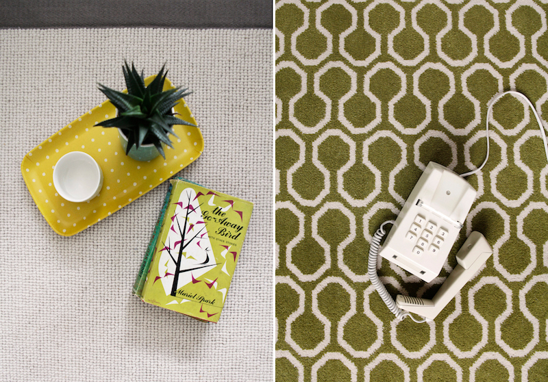 Keith:Texture is important in a design scheme so for one of the bedrooms I chose the Wool Milkshake Coconut Carpet with single linen seal border. In keeping with our idea of creating a holistic live/work space, we designed our own plywood furniture for this room. Its clean, modern look is inspired by modular mid-century furniture by the likes of Robin Day and George Nelson. The room features a densely patterned wallpaper and so we wanted to introduce texture rather than more pattern. The soft coconut tone of this rug was the ideal solution, and the seal border gives it the perfect crisp finish.
